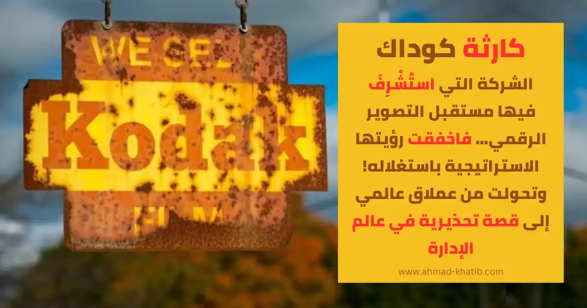 كارثة كوداك 📉 – الشركة التي استُشْرِفَ فيها مستقبل التصوير الرقمي… فاخفقت رؤيتها الاستراتيجية باستغلاله! وتحولت من عملاق عالمي إلى قصة تحذيرية في عالم الإدارة